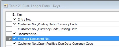 As you can see, only the External Document No. field is selected by the system. This is pretty cool, because we a) only ask SQL what we really need and b) in many cases we could eliminate the Key Lookup to the clustered index because we could take advantage of the covering index having all the fields in the non-clustered index. No excessive data, no excessive load on the network and RAM, and no extra lookup for fields, which we simply do not need and could take directly from the non-clustered index. Pure performance increase.