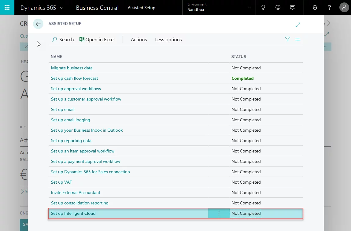 Search for Intelligent Cloud Management in your MSDYN365BC.