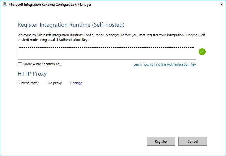 Select Register after the Authentication Key was verified.