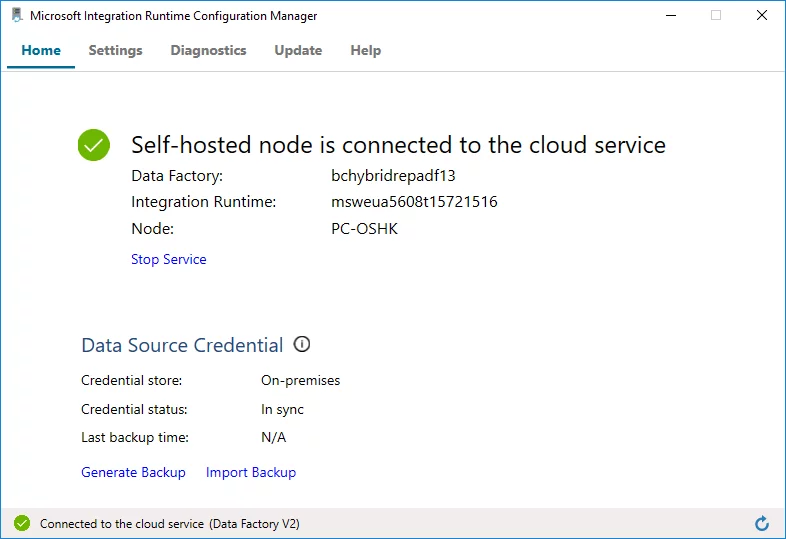 17. On the following page you can check the Self-hosted node connection status.