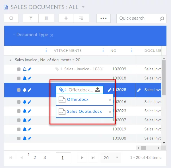Fields with attachments can show the number of