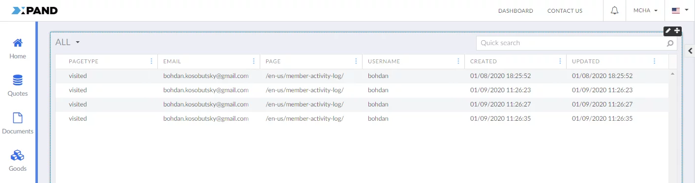 Member activity on the portal can now be tracked. A new entity – MemberActivityLog – was added. This entity is automatically added to portal configuration. If the portal administrator chooses to do so, a page can be created using this entity where pages visited by each member that sign in to the portal will be logged.