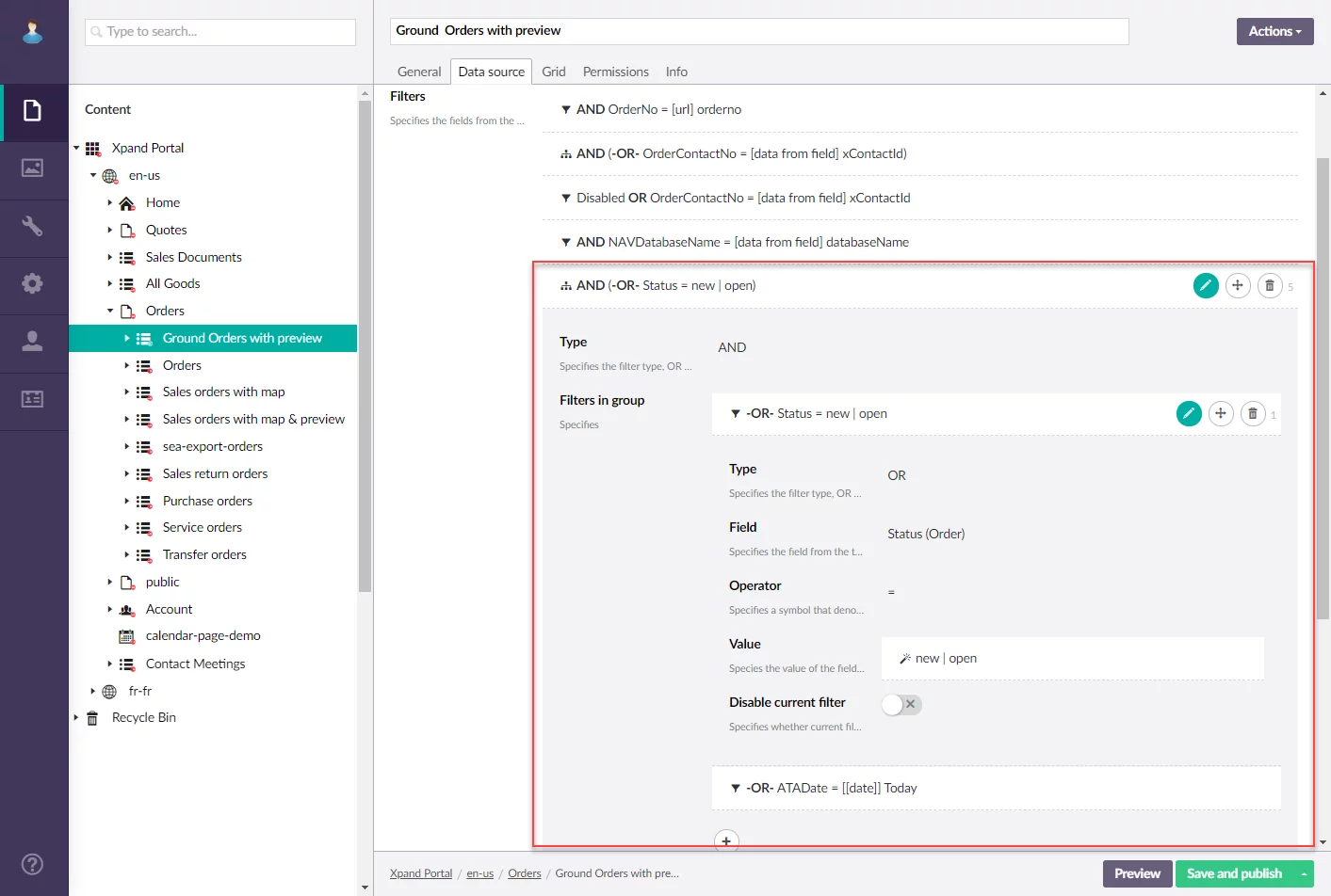 Filters that you set for page data source entity have been improved as follows: