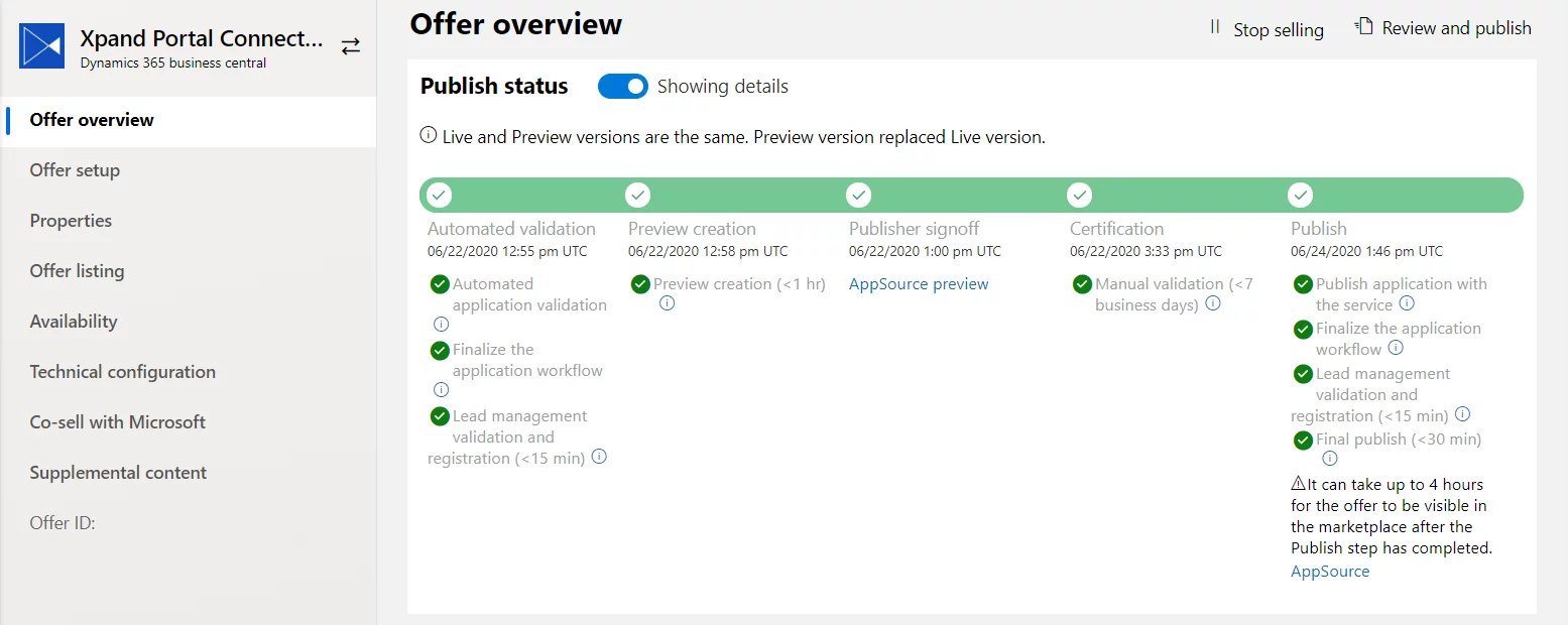 If all technical requirements for publishing of your app are met and all required marketing materials are available, the whole process of publishing your app to Microsoft AppSource is quite a fast procedure. These are the main steps of this process if you would like to make your app available in the AppSource: