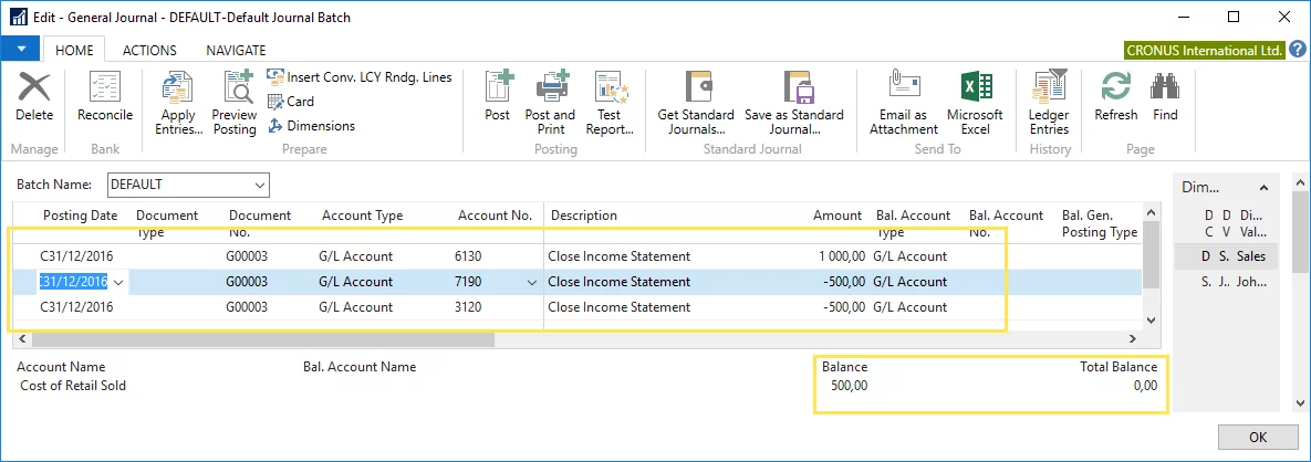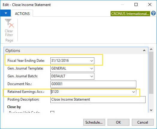Closing Income Statement in Microsoft Dynamics NAV