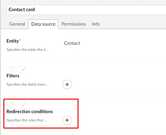 Now it is possible to redirect the member to a different page when opening the detail (card) page if a certain condition(s) is met. Redirection conditions can be configured on the Data source tab.