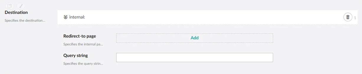Redirect to Page - Specifies the internal page or page element to which the user will be redirected when opening the page if this condition is met. Specifies the internal page or page element to which the user will be redirected when opening the page if this condition is met.
