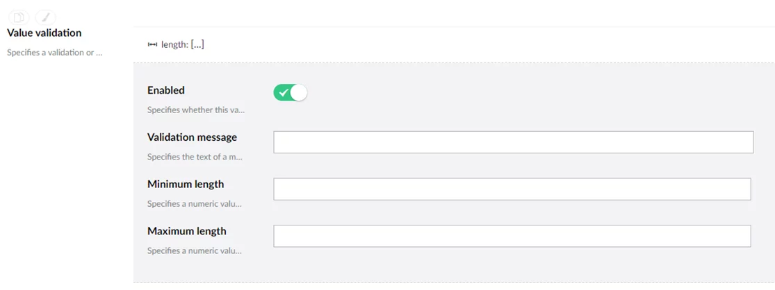 Field length – Verifies whether the length of the field value after having been edited is within the specified length range.
