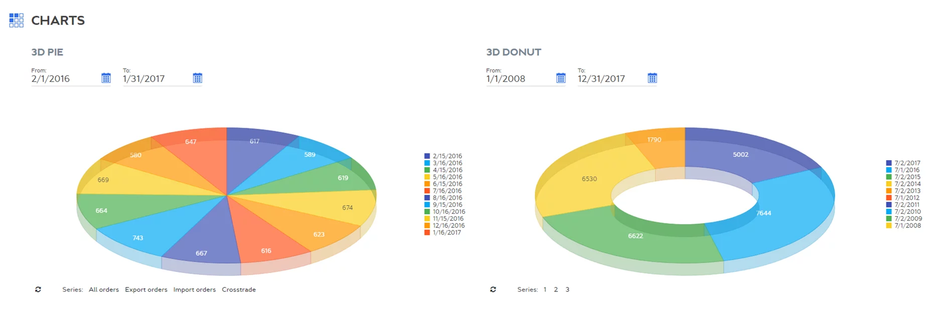 New 3D charts are available for use: 3D pie and 3D donut charts.