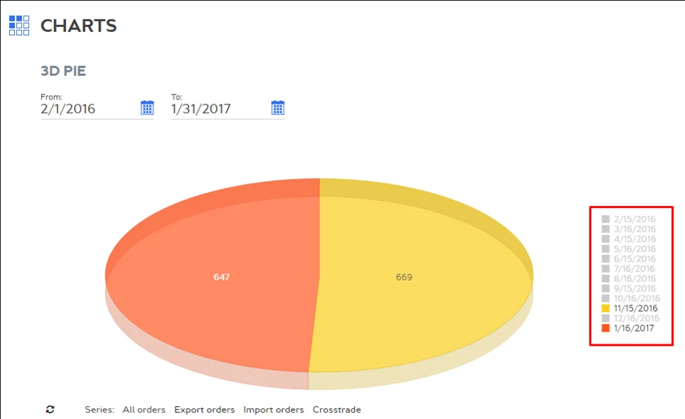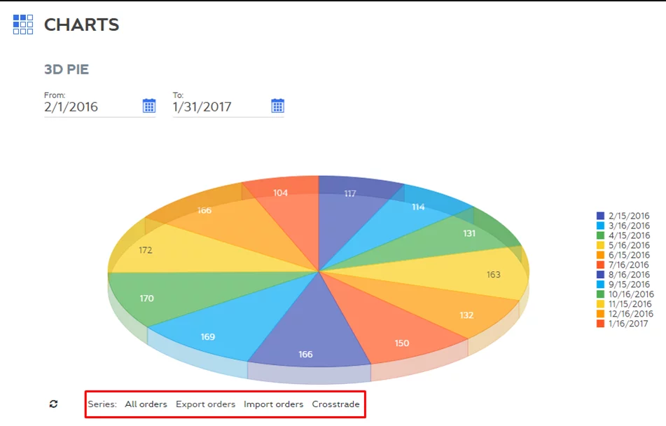 You can filter chart content by period selecting period from a