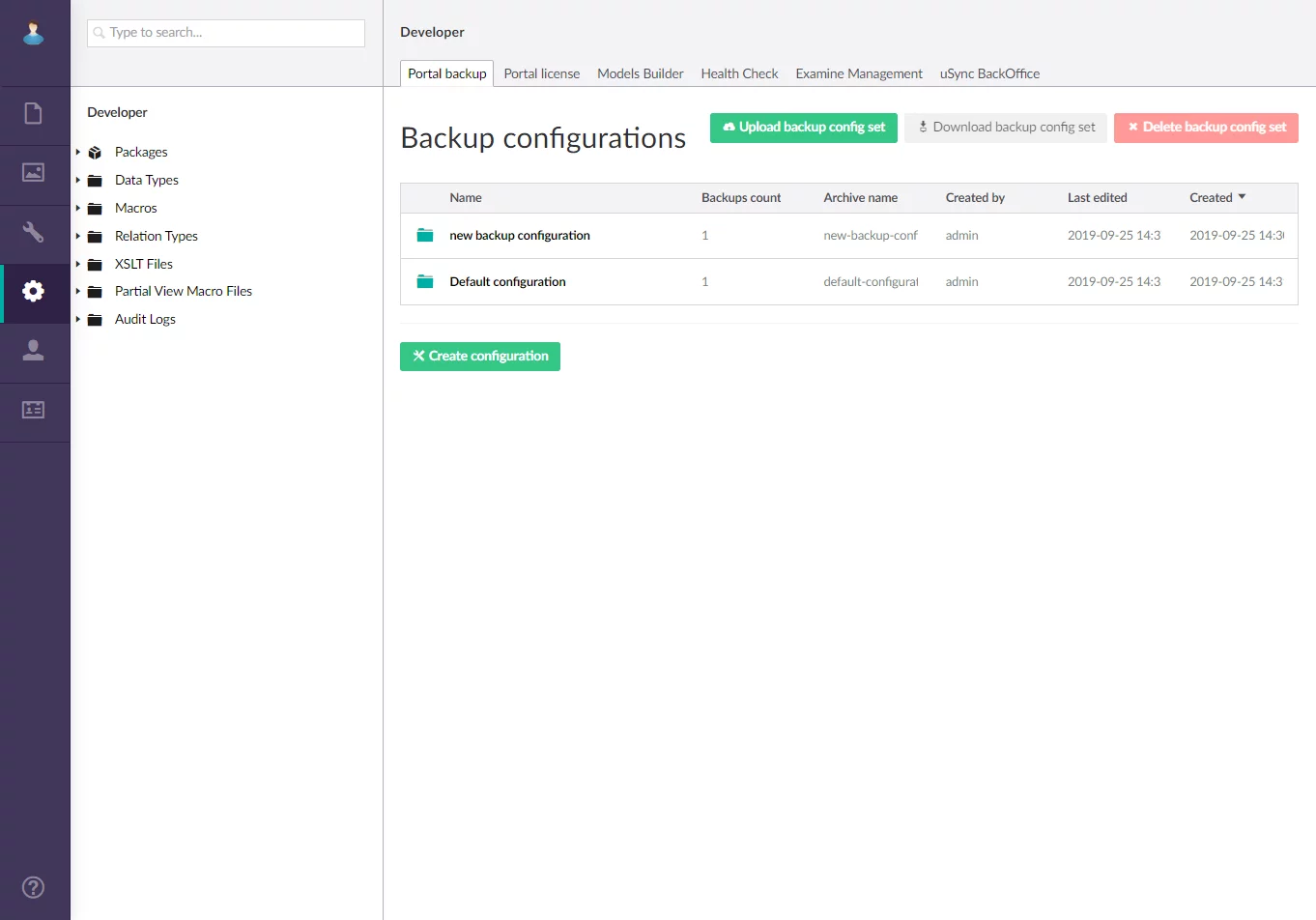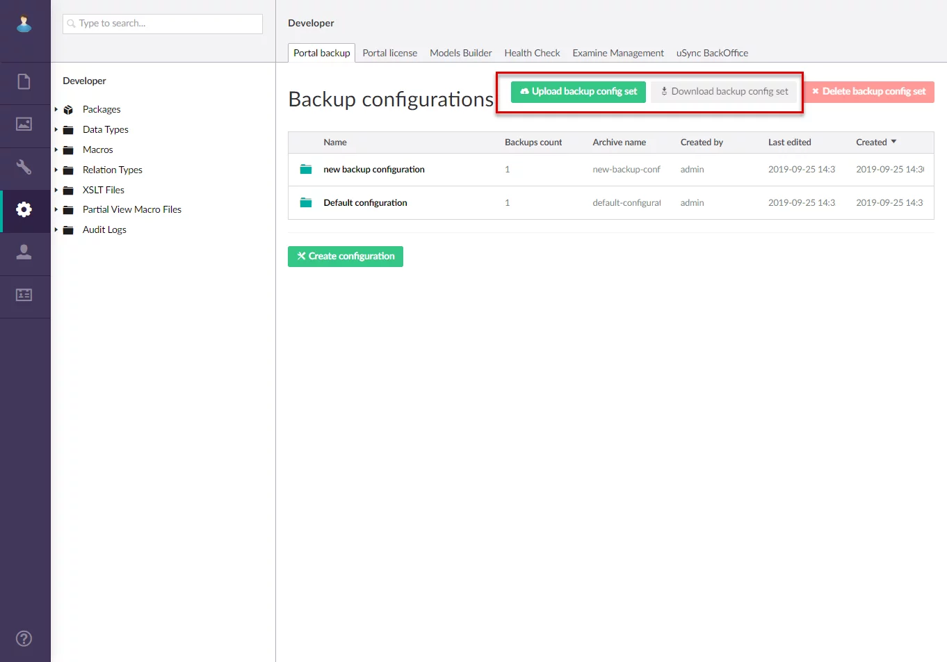 The created configuration backup file can be downloaded so that you could upload it on to a different portal environment if necessary.