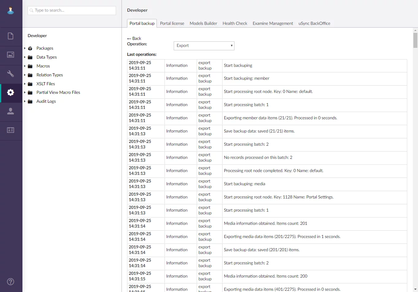 After you specify which configuration areas will be exported, you start the backup process. Configuration is exported into a ZIP archive that contains configuration backup files and a JSON file with export/import settings.