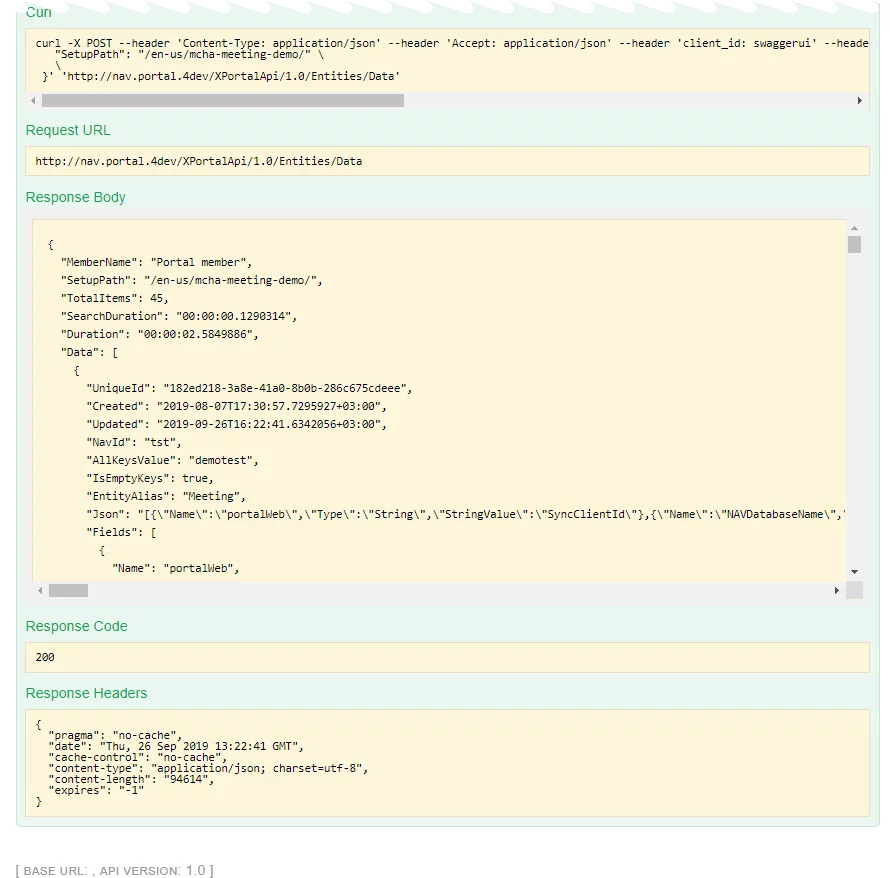 A SWAGGER client is used as an example to visualize interaction with the Xpand Portal API’s resources to retrieve information and data from Xpand Portal.