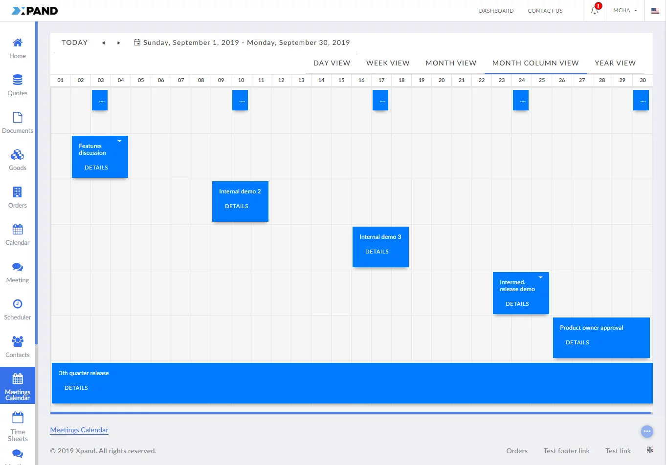 - The Calendar page has a new view: Month Column. This view has days organized into column with column per day. This view can be used both when a calendar is embedded into a grid and in a stand-alone calendar.