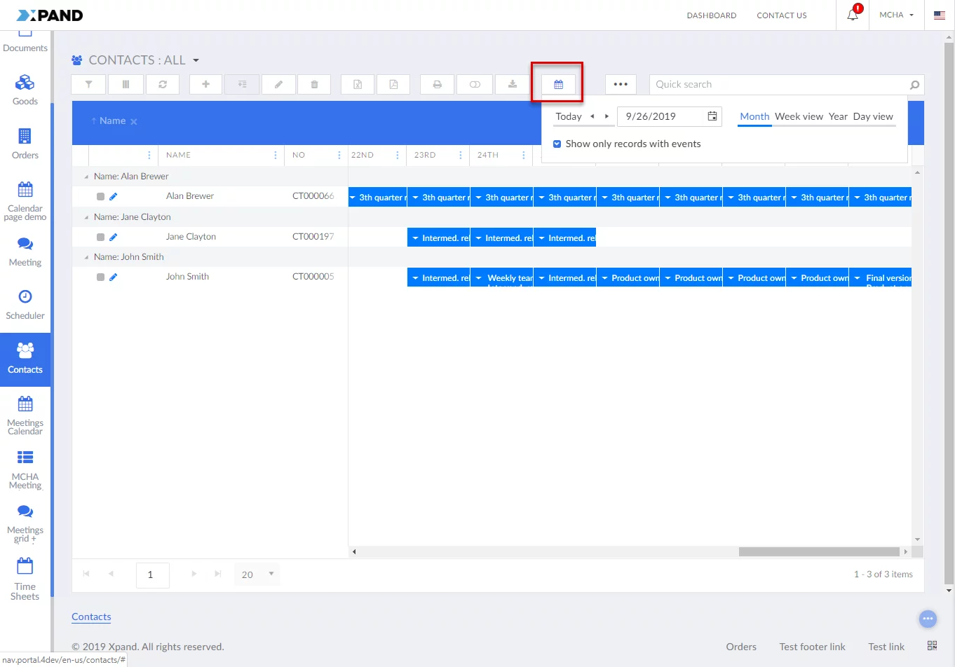 - Now a Calendar page can be embedded into a grid page. This enables you to link the calendar with two different entities to show related data. For example, you can link the calendar to the Contacts entity and to the Meetings entity, set up relation between them, and then have the calendar display scheduled meeting for contacts.