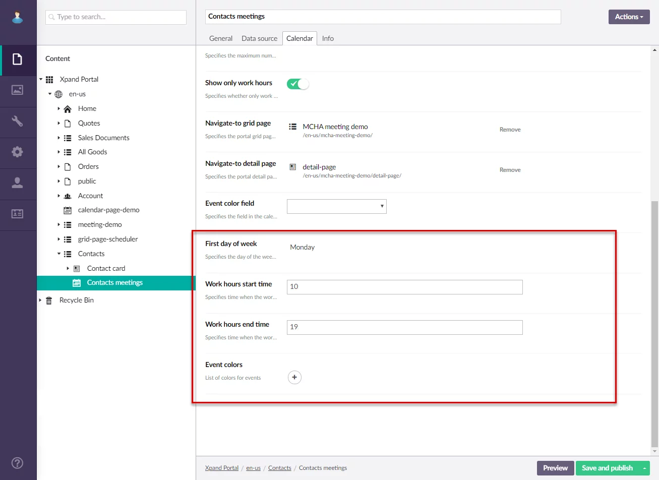 The Calendar functionality has been expanded, introducing the following new features for this type of page: