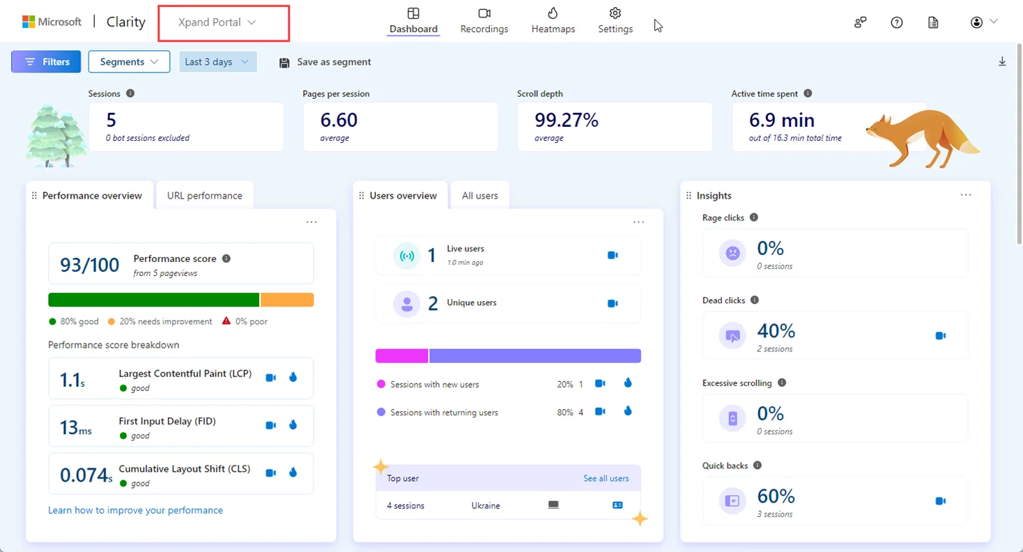 An example of using the Clarity analysis tool from Microsoft with an Xpand Portal environment: